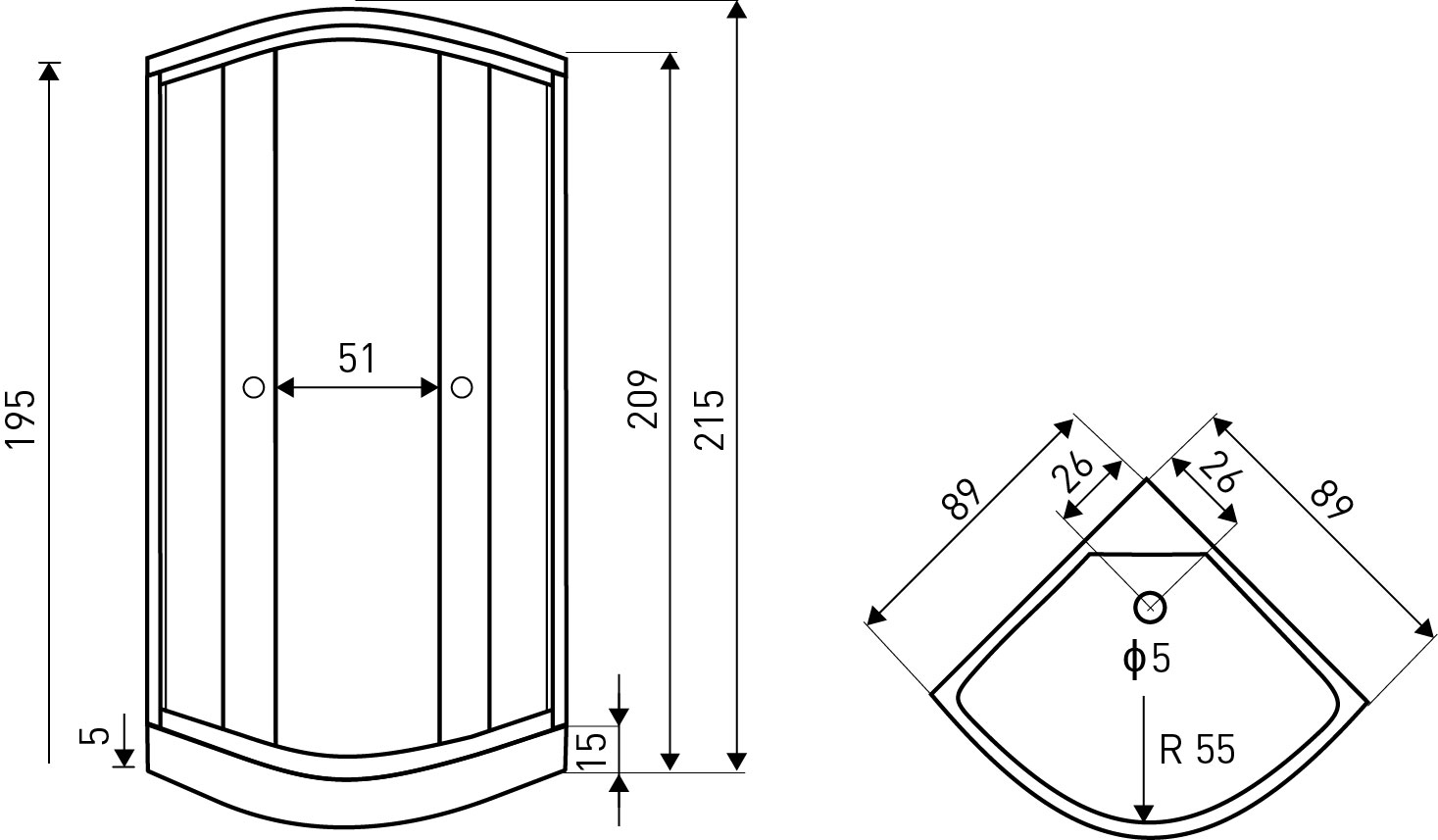 Brodzik uniwersalny 5,5 cm – OSKAR 90×80