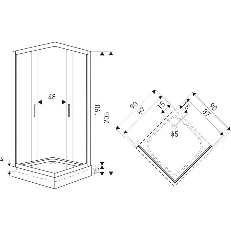 Kabina prysznicowa Madera Str 90 SQ (z brodzikiem)