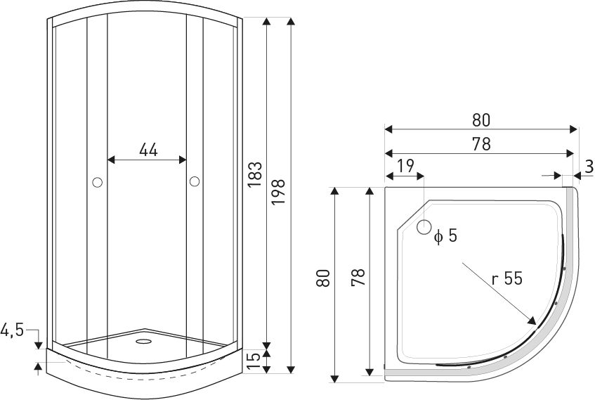 Kabina prysznicowa z brodzikiem Pixel XN 80(czarna)