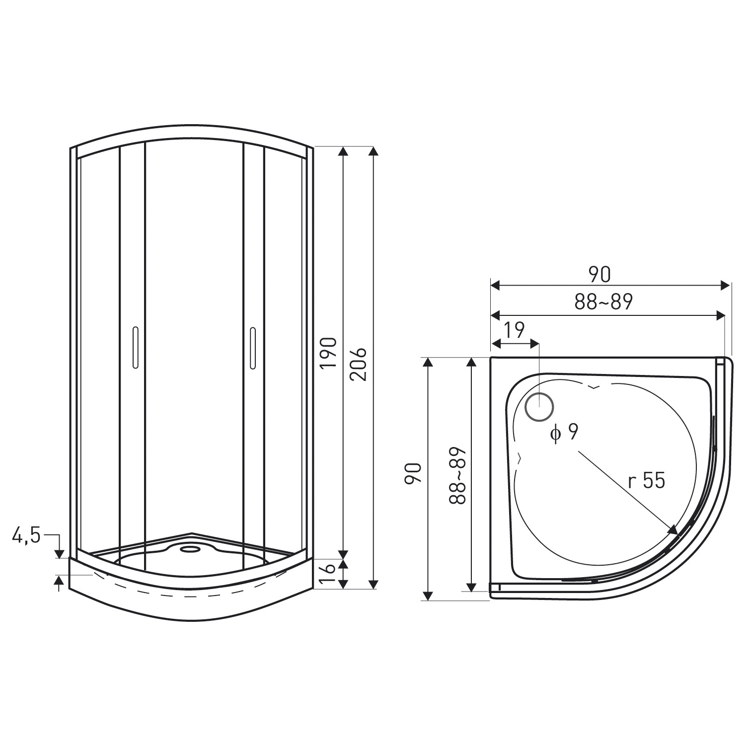 Kabina natryskowa Classic 90 black (z baterią)