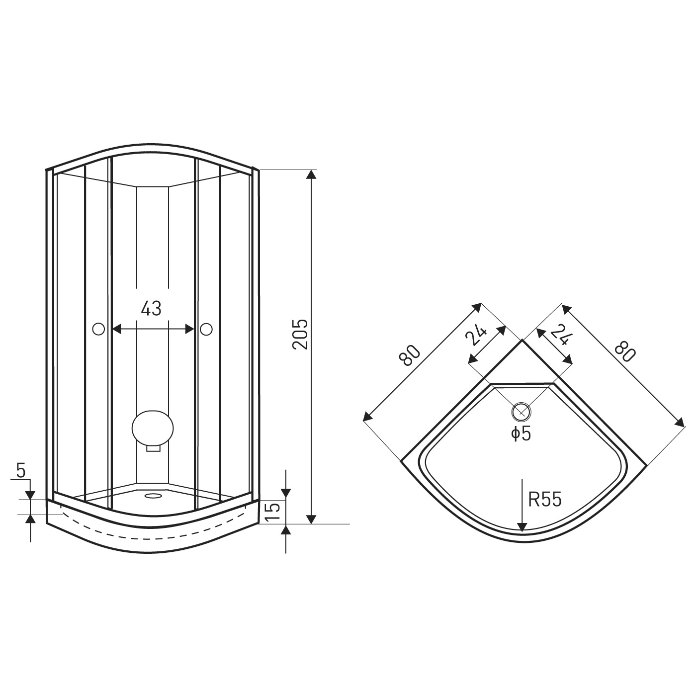 Kabina prysznicowa z brodzikiem Splash 80 (czarna)