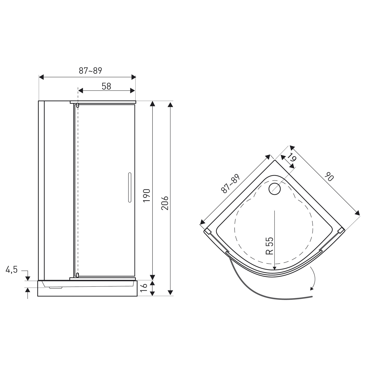 Kabina prysznicowa z brodzikiem Splash 90 (czarna)