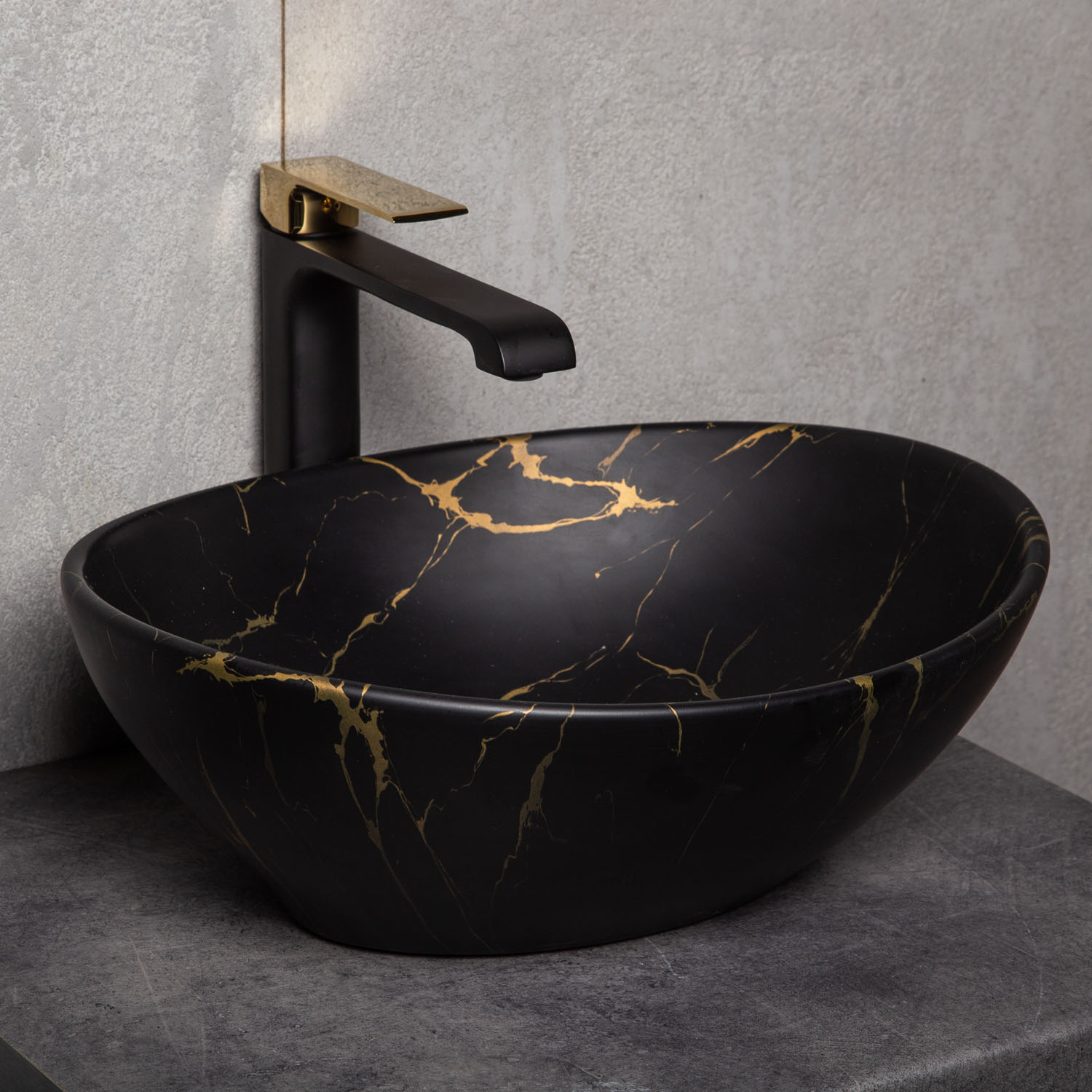 Umywalka nablatowa KR-707 marmurowa(czarno-złota)